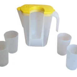 Saftkrug Mit 4 Trinkbechern Pendel-Ausguss Karaffe Mit Deckel Saftkanne, Farbe:gelb