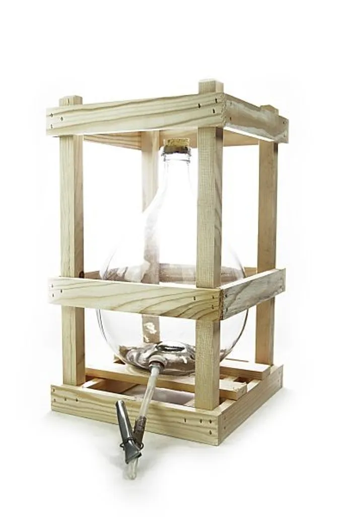Glasballon Im Holzgestell ❀ 5 Liter ❀ Mit Ablaufhahn & Korken